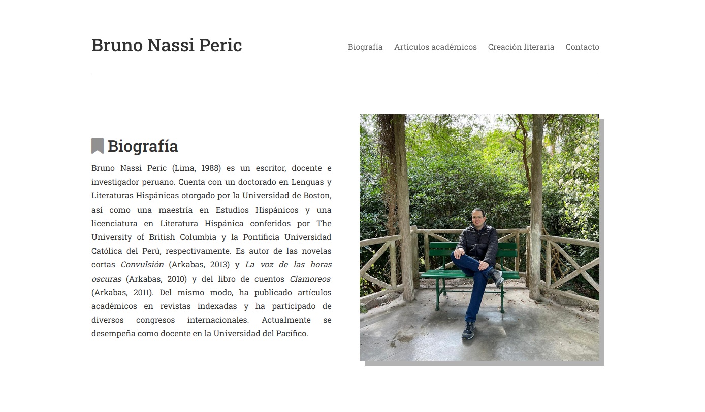 Desarrollamos un sitio web para el renombrado escritor peruano, diseñado para destacar su trayectoria literaria y académica. Esta web brinda a los usuarios una ventana hacia la vida y obra del autor, permitiendo explorar tanto su legado en la literatura como sus contribuciones en el ámbito académico, todo en un formato elegante y fácil de navegar.