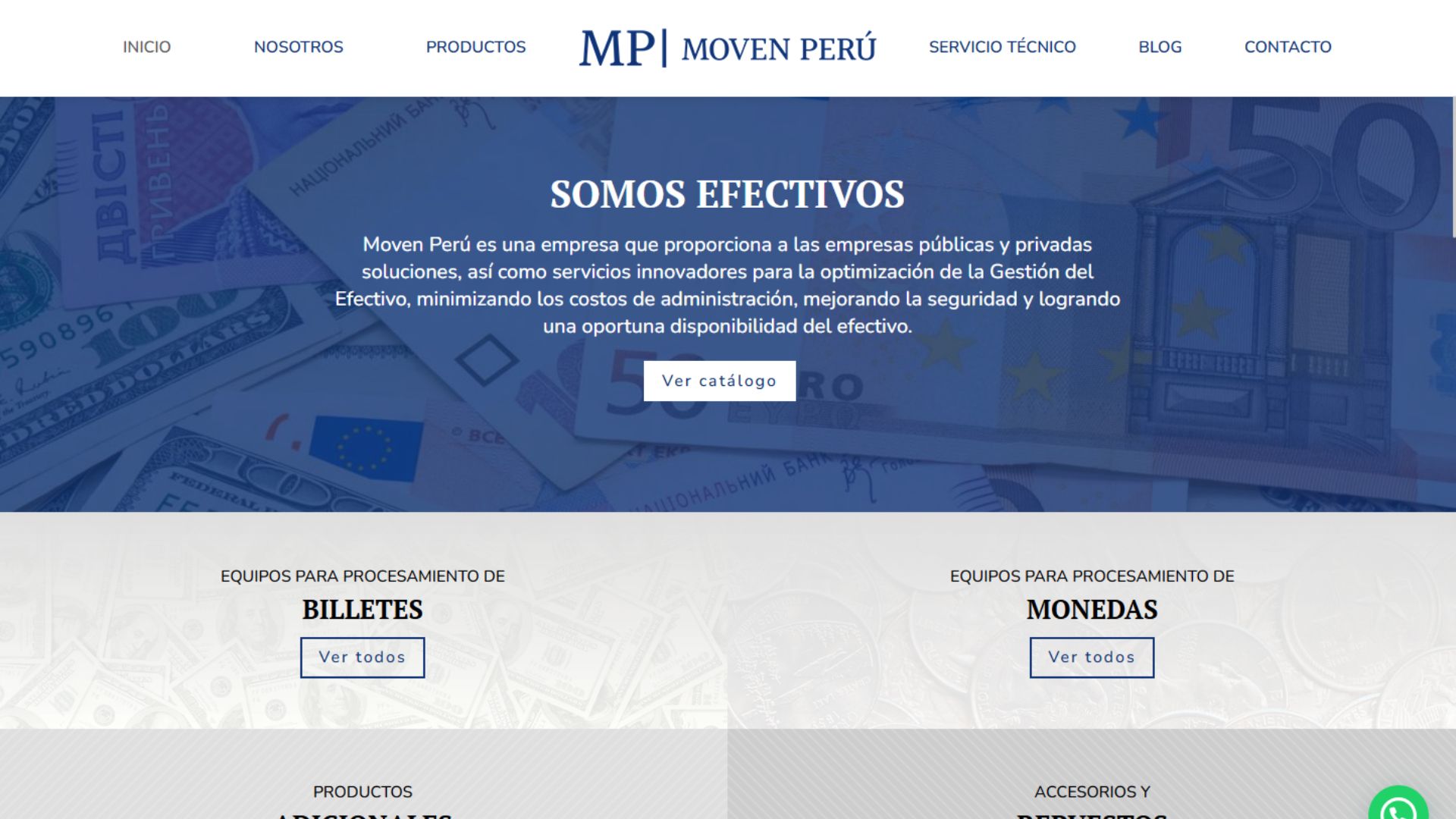 Desarrollamos un sitio informativo para Moven Perú, una empresa especializada en soluciones innovadoras para la gestión del efectivo, que optimiza costos, mejora la seguridad y asegura la disponibilidad del dinero en empresas públicas y privadas. La web presenta de forma clara su catálogo de equipos para procesamiento de billetes, monedas, repuestos y accesorios, complementado con secciones de novedades y un blog para mantener al público actualizado.
