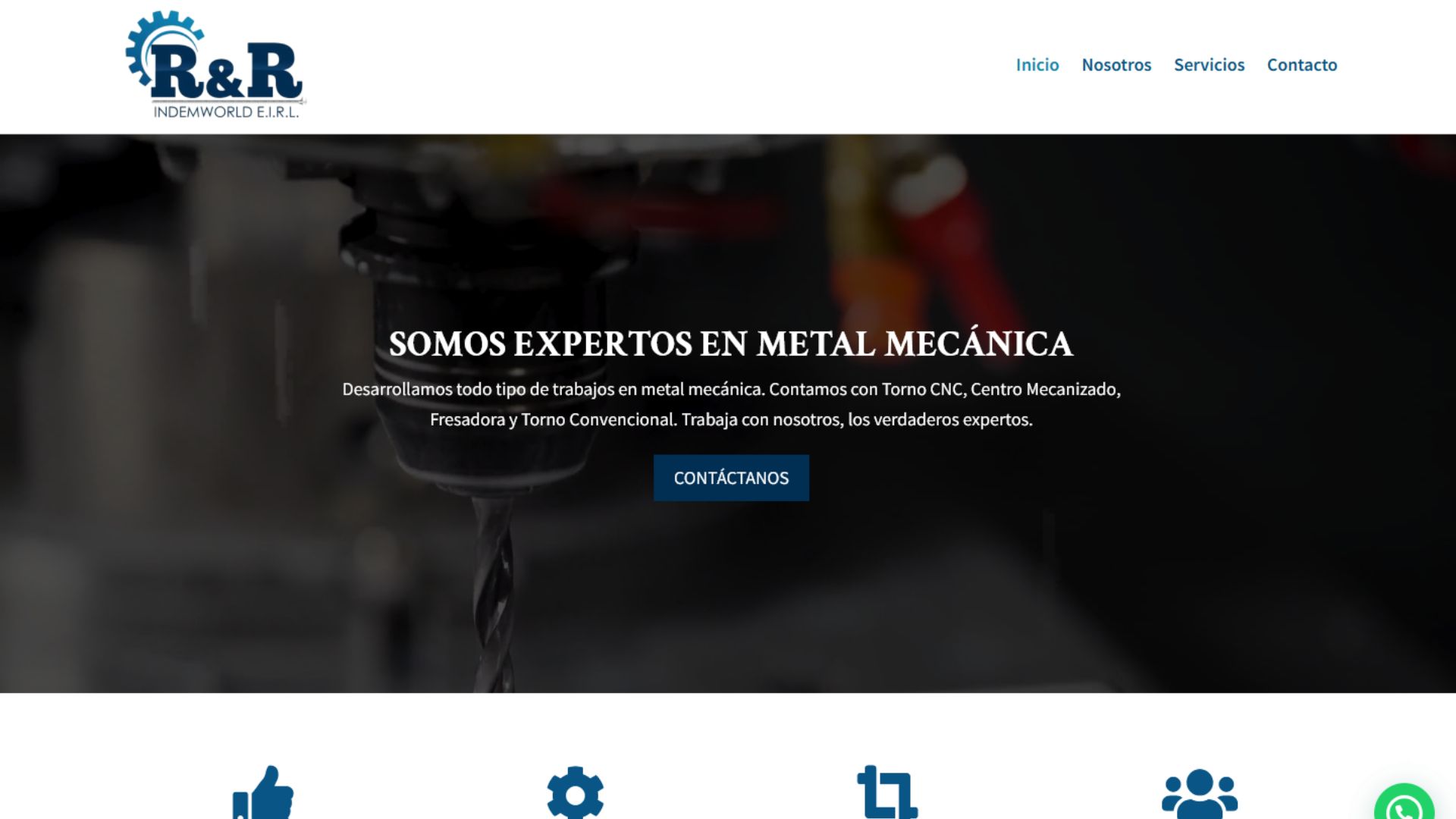 Desarrollamos un sitio informativo para R&R IndemWorld, una empresa especializada en trabajos de metalmecánica que opera con maquinaria de precisión como torno CNC, centro de mecanizado, fresadora y torno convencional. La página comunica de forma clara su compromiso con la eficiencia, calidad y responsabilidad en cada proyecto.